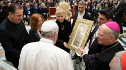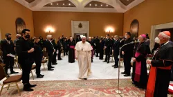 Nell'auletta dell'Aula Paolo VI il Papa incontra tutti gli artisti che si esibiranno nel Concerto di Natale 2021 in Vaticano. L'iniziativa è promossa dalla Congregazione per l’Educazione Cattolica e il ricavato sarà devoluto a favore della Fondazione Pontificia Scholas Occurrentes e della Associazione Salesiana Missioni Don Bosco.