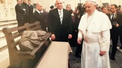 Gesù rappresentato a grandezza naturale come un senzatetto adagiato su una panchina, avvolto da una coperta leggera. E' la scultura fusa in bronzo che durante la Settimana Santa è stata collocata nel cortile di Sant'Egidio in Vaticano, all'ingresso degli uffici dell'Elemosineria Apostolica.