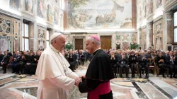 Papa Francesco riceve in Udienza gli organizzatori della Mostra riguardante la storia dei Giubilei dal titolo “Antiquorum habet”, che ha avuto luogo presso il Senato della Repubblica Italiana dal 13 marzo al 2 luglio 2016. Una mostra che ha caratterizzato il Giubileo Straordinario della Misericordia qui a Roma.