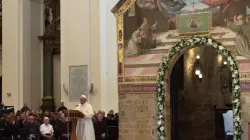 La seconda visita di Francesco a Francesco questa volta si svolge a Santa Maria degli Angeli ad Assisi, nella ricorrenza dell’VIII Centenario del Perdono di Assisi. Il Papa, accolto dal Vescovo Domenico Sorrentino e dal Ministro Generale dell’Ordine Francescano dei Frati Minori P. Michael Anthony Perry, è sceso nella Porziuncola per un momento di preghiera silenziosa. Poi, in Basilica, l’incontro con i presenti per un momento di meditazione.