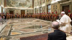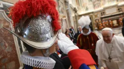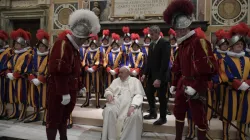 “Siete chiamati ad essere forti e valorosi, sostenuti dalla fede in Cristo e dalla sua parola di salvezza. La vostra presenza nella Chiesa, il vostro importante servizio in Vaticano è un’occasione per crescere come coraggiosi “soldati di Cristo””.