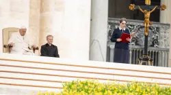 "A San Giuseppe raccomandiamo le popolazioni dell’Ucraina e della Terra Santa, la Palestina, Israele, che tanto soffrono l’orrore della guerra e non dimentichiamo mai che la guerra sempre sarà una sconfitta, dobbiamo fare tutti gli sforzi per trattare, per negoziare, per finire la guerra, preghiamo per questo", dice subito il Papa nei saluti in lingua italiana.