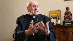 C’era una piccola insegna in ceramica sul campanello della porta, e la scritta: “Vado avanti come un asino”, in francese. Per il Cardinale Roger Etchegaray, che non aveva da vescovo voluto né motto né simbolo perché li considerava un “retaggio medievale”, era quella la frase che lo rappresentava meglio, tanto che fece da titolo ad un libro che è un po’ la cifra di tutto il suo pensiero.