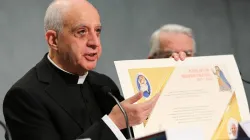 Monsignor Rino Fisichella, presidente del Pontificio Consiglio per la Promozione della Nuova Evangelizzazione consegna il camper donato da Papa Francesco alla sottosezione di Roma dell'U.N.I.T.A.L.S.I. (Unione Nazionale Italiana Trasporto Ammalati a Lourdes e Santuari Internazionali) per le attività svolte dall'Associazione a favore delle famiglie in difficoltà e delle persone con disabilità.