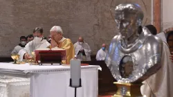 “Carissimi fratelli un saluto dall’antichissima cappella della cattedrale di san Catervo di Tolentino. Vogliamo pregare con voi ricordando il beato fra Tommaso da Tolentino, ringraziando il Signore per la sua testimonianza, vogliamo pregare per i pastori delle Chiese locali. Come il Signore, attraverso il suo Spirito, ha sostenuto gli inizi della Chiesa attraverso la comunione degli apostoli, l’eucarestia, la preghiera e la carità, così oggi sostenga i suoi pastori al servizio del loro popolo e doni ancora nuovi e coraggiosi servitori alla sua Chiesa”.