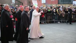 C’è “corrispondenza tra liturgia e vita”, quella “celebrazione liturgica che poi io porto nella mia vita; e su questo si deve andare ancora più avanti, si deve fare ancora tanto cammino”. Ecco perché c’è bisogno di un “culto autentico”: è “un richiamo che vale per ogni epoca e anche oggi per noi. Quella corrispondenza tra liturgia e vita. La liturgia non è una cosa strana, là, lontana, e mentre si celebra io penso a tante cose, o prego il rosario. No, no”. Fa riferimento alla riforma più visibile del Concilio, papa Francesco, e a cinquant’anni da quel 7 marzo 1965, come Paolo VI, torna nella parrocchia romana di Ognissanti per ricordare la prima messa in lingua corrente celebrata proprio in quel tempio sulla via Appia nuova.