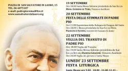 Anche quest'anno ricco programma di festeggiamenti a San Salvatore in Lauro, a Roma, per la festa di San Pio da Pietrelcina, il prossimo 23 settembre. Il santuario è punto di riferimento per i gruppi di preghiera di Padre Pio a Roma e soprattutto conserva le reliquie dell'amato santo pugliese.