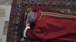 L’immagine del Papa prostrato dinanzi alla Croce apre la celebrazione della Passione del Signore. Nel pomeriggio del Venerdì Santo, nella Basilica Vaticana, è il Papa a guidare la liturgia, ma è il predicatore della Casa Pontificia, il Cardinale Raniero Cantalamessa, ad offrire una riflessione.