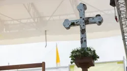 Poco prima della Messa, c’era una certa agitazione nella tenda che fungeva da sacrestia per il Papa al Kosevo Stadium. Monsignor Guido Marini, Cerimoniere Pontificio, a un certo punto si è assentato. Poi è tornato, ha dato le ultime disposizioni. Cose normali, in una organizzazione che viene curata nei minimi dettagli. Ma quando Papa Francesco è uscito per la Messa, proprio un dettaglio cattura l’attenzione: la sua croce pastorale è avvolta, alla fine del manico, dove il Papa la impugna, da una sorta di nastro adesivo.