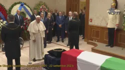 Papa Francesco ha voluto rendere omaggio stamane alla salma del Presidente emerito della Repubblica Italiana Giorgio Napolitano, morto venerdì all'età di 98 anni.