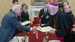 Santa Sede e Stati Uniti d'America hanno firmato oggi un accordo per favorire l’osservanza a livello internazionale degli obblighi fiscali e attuare la Foreign Account Tax Compliance Act. L'intesa è stata siglata da Mons. Paul Richard Gallagher, Segretario per i Rapporti con gli Stati, e da Kenneth F. Hackett, Ambasciatore degli Stati Uniti presso la Santa Sede.