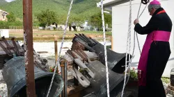 Le tre campane della chiesa parrocchiale di S. Pellegrino di Norcia sono tornate a suonare dopo i violenti terremoti del 2016. Fino ad ora erano conservate nel deposito di opere d’arte del Ministero della Cultura a Santo Chiodo di Spoleto. Sono state posizionate in una torre campanaria orizzontale realizzata in legno e posizionata al lato del centro di comunità che ora funge da chiesa.