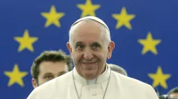Robert Schuman era solito andare a pregare nella Cattedrale di Strasburgo. E lì, in quella cattedrale dedicata a “Notre Dame”, con una torre che sale fino in cielo e un orologio a scandire il tempo, pensò quella che sarebbe stata l’Unione Europea. Ed è lì che portò Jean Monnet, non credente, ma sensibile ai valori della pace, per costruire l’architettura dell’Europa, insieme ai due leader cattolici Alcide De Gasperi e Konrad Adenauer. Ed è proprio in quella chiesa, tra l’azzurro delle vetrate, che la leggenda narra sia nata la bandiera europea.
