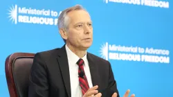 Anche Ján Figel, inviato speciale della Commissione Europea per la promozione della libertà di religione o di credo al di fuori dell’Unione Europea, visita l’esposizione di Aiuto alla Chiesa che Soffre sulla persecuzione anticristiana al Meeting di Rimini.
