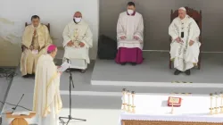 E' la prima Messa di Papa Francesco a Cipro. Nello stadio Pancyprian Gymnastic Association , noto anche come Stadio Neo GSP, uno stadio di calcio, Francesco accoglie i fedeli di Nicosia.