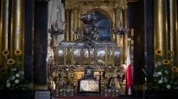 C’è emozione e suggestione nell’arrivo del Papa nella Cattedrale di Cracovia. Tutto parla di Giovanni Paolo II, il Papa si ferma a pregare davanti alla tomba di san Stanislao e alle reliquie di San Giovanni Paolo II, il canto sale suggestivo da dietro l’altare, dal presbiterio dove sono raccolti i vescovi polacchi.